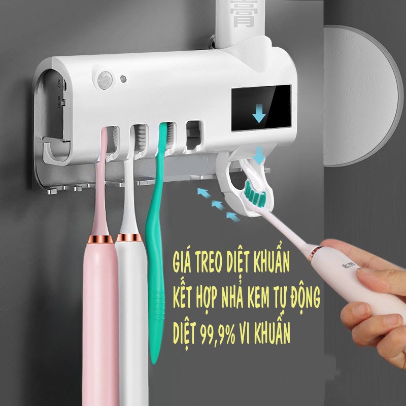 Giá Treo Bàn Chải Đánh Răng Kết Hợp Nhả Kem Đánh Răng Khử Khuẩn Tuyệt Đối Bằng Tia UV