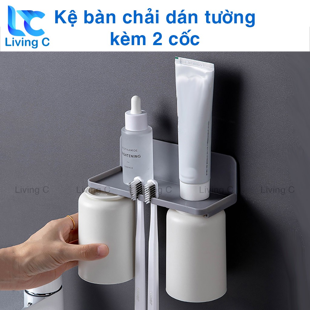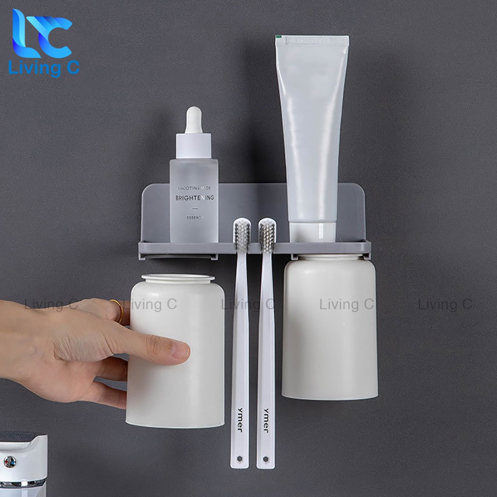 Nhà cửa & Đời sống > Đồ dùng phòng tắm > Kệ đựng bàn chải, kệ nhả kem đánh răng || Giá treo bàn chải đánh răng kèm 2 cốc Living C, móc treo bàn chải dán tường _K2CCòn hàng
