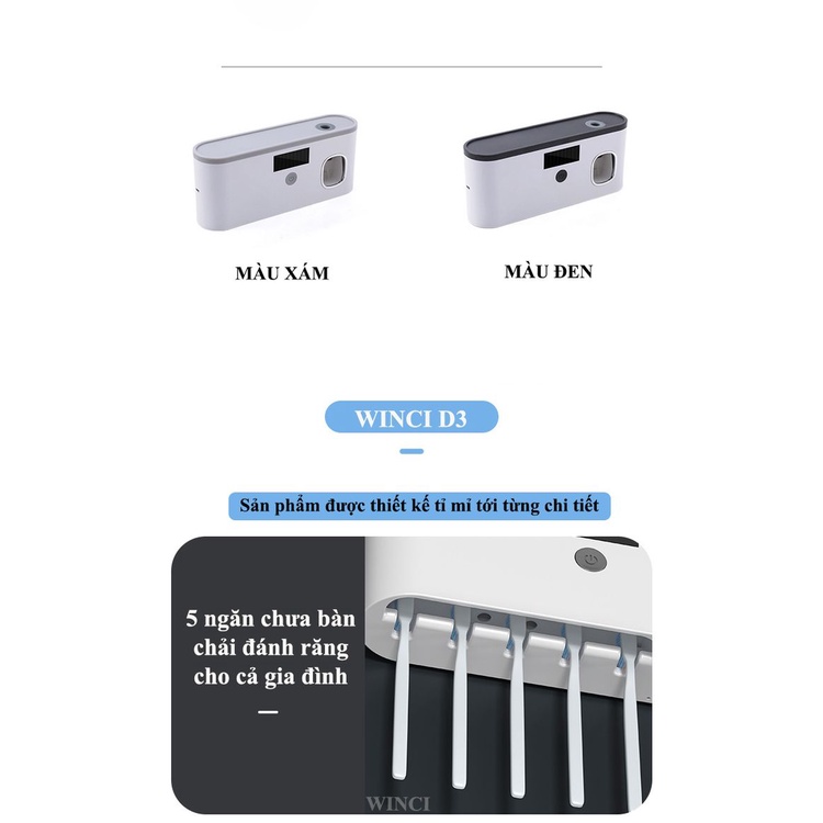 Giới thiệu Giá treo Bàn Chải Đánh Răng, Khử khuẩn bằng tia UV, Lấy kem tự động Winci, Win-D3.