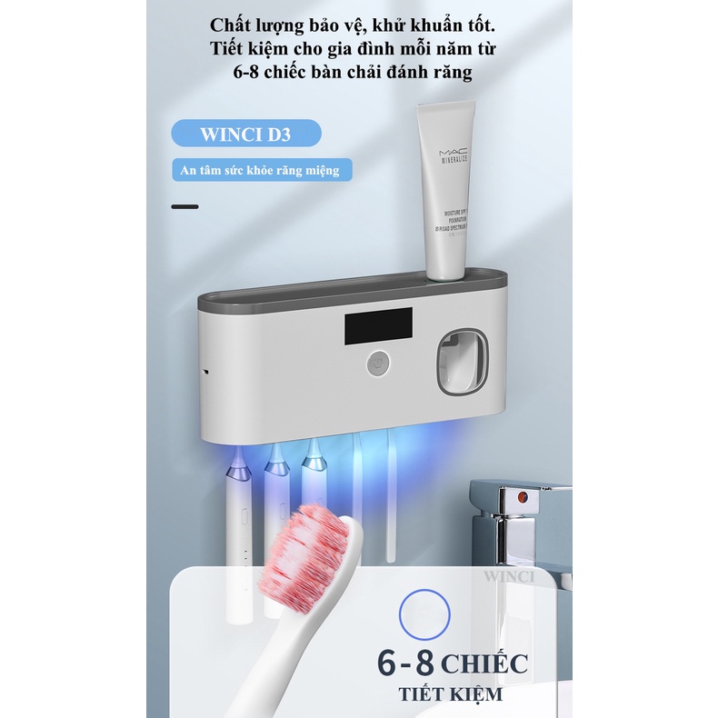Giá treo Bàn Chải Đánh Răng, Khử khuẩn bằng tia UV, Lấy kem tự động Winci, Win-D3.