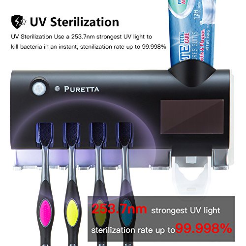 - Puretta được mệnh danh là vệ sĩ gia đình, sử dụng tia cực tím 253.7nm UV có thể tiêu diệt 99,998% vi khuẩn và vi trùng bám trên bàn chải đánh răng.