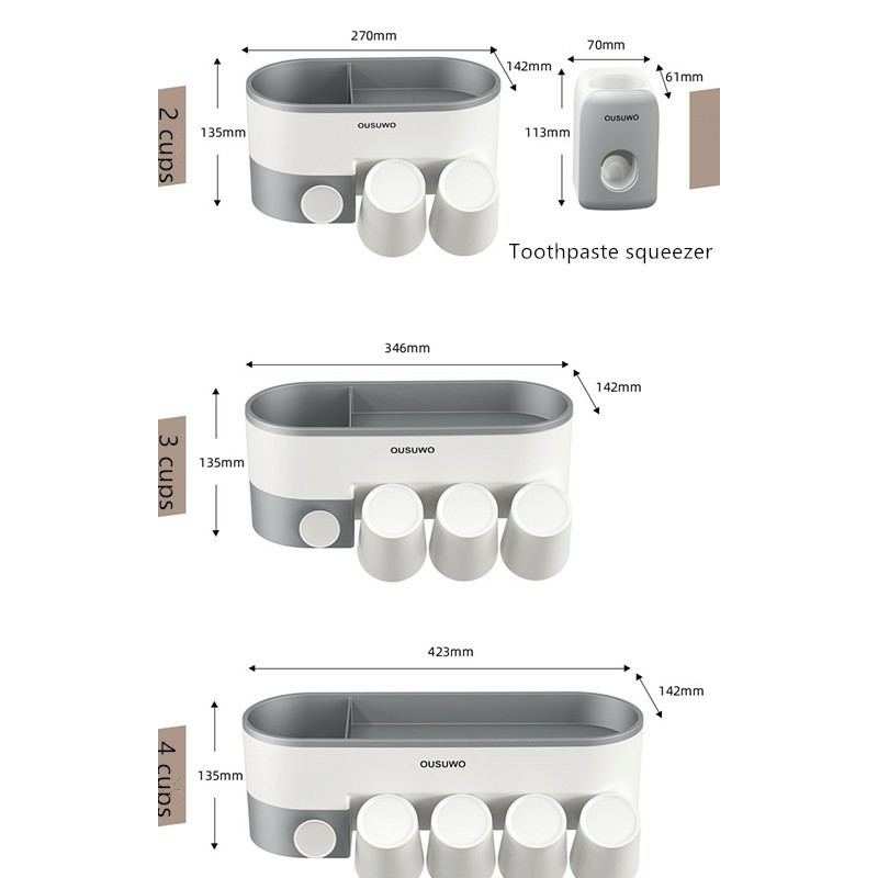 Giá Treo Bàn Chải Đánh Răng Phòng Tắm Dán Tường, Kệ Để Đồ Nhà Tắm Kèm Cốc Chất Liệu Nhựa ABS - OUSUWO