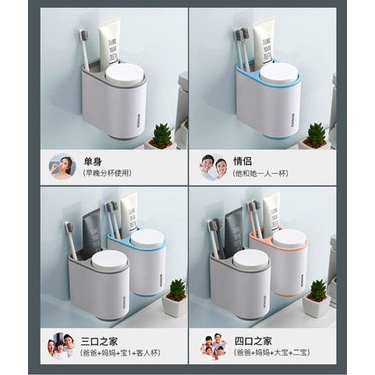 - Trọn bộ sản phẩm: 1 giá treo + 2 cốc khác màu nhau + Miếng dính tường