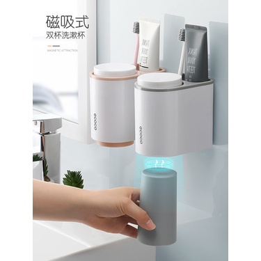 Giá Treo Bàn Chải Đánh Răng ECOCO Tặng Kèm 2 Cốc Lắp Đặt Dán Tường