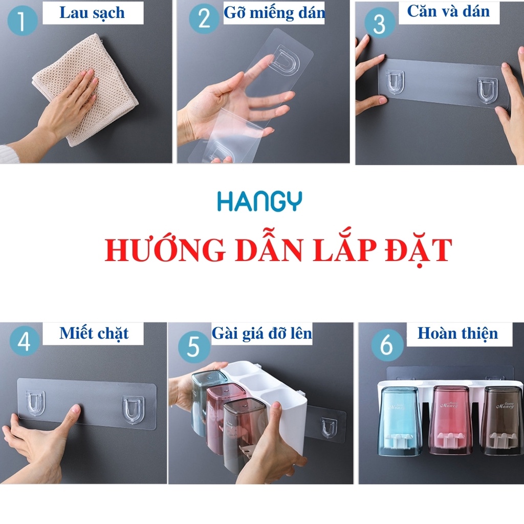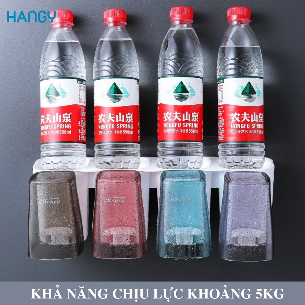 - Bộ sản phẩm bao gồm: 4 cốc nhựa trong suốt, 1 miếng siêu dính cố định giá treo, giá treo, 4 móc treo