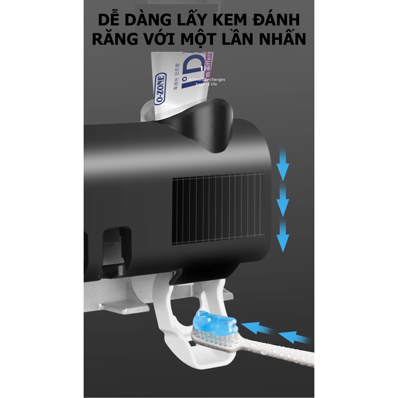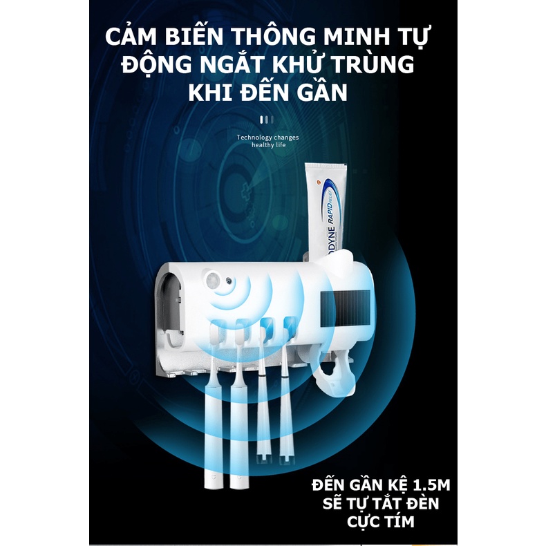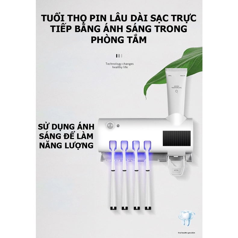 Giá treo bàn chải khử trùng bằng tia cực tím kèm bộ nhả kem đánh răng tiện lợi