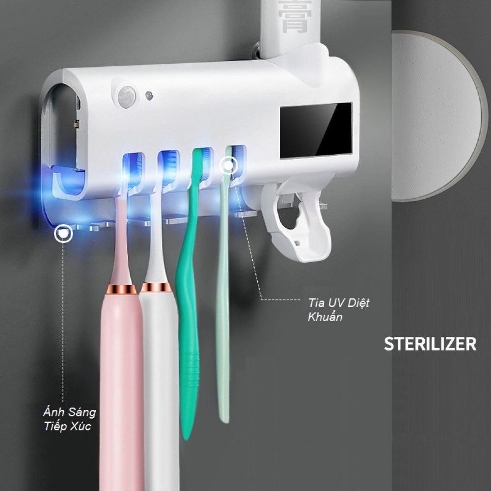 Giá treo bàn chải khử trùng bằng tia cực tím kèm bộ nhả kem đánh răng tiện lợi HD00024