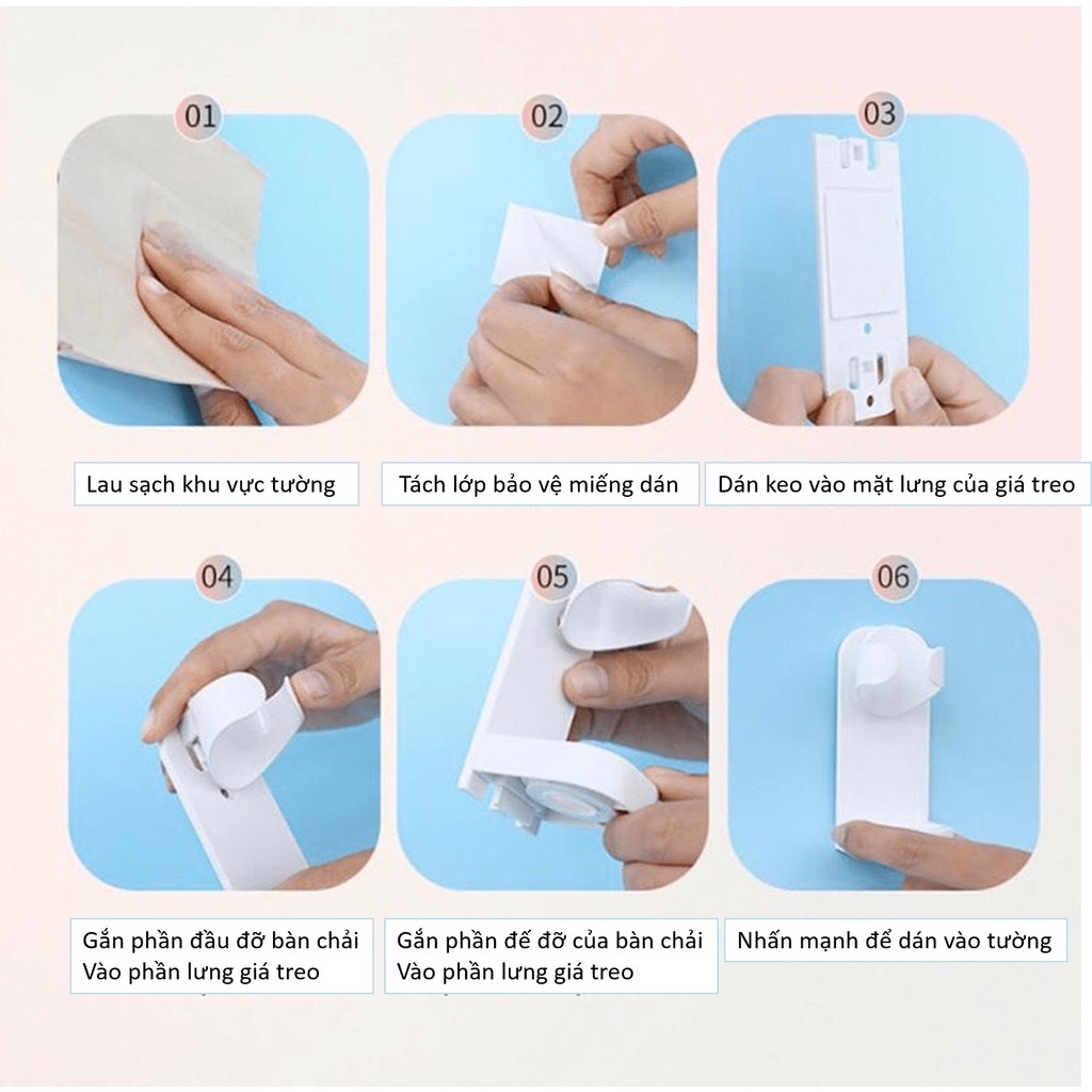 Giá treo bàn chải, móc treo bàn chải điện chất liệu ABS an toàn tiện lợi dễ lắp đặt và sử dụng giúp bàn chải luôn khô ráo, chống rơi vỡ và tiết kiệm diện tích.* Ưu điểm của giá treo bàn chải điện: