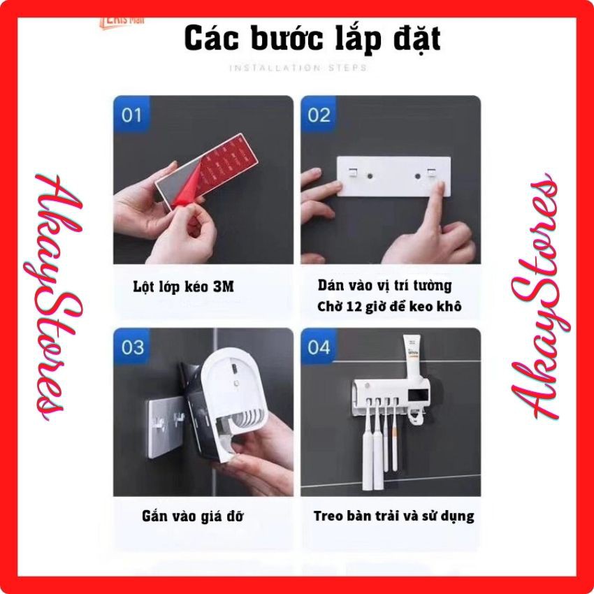 Giá Treo Bàn Chải Nhả Kem Thông Minh Sạc Pin Tia UV Diệt Khuẩn 99% máy sấy tiệt khử trùng diệt khuẩn bàn chải AkayStores