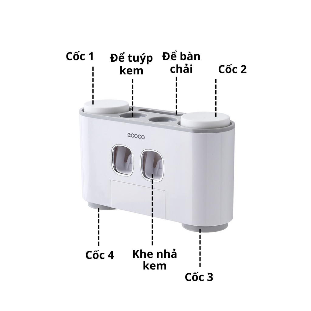 Nhà cửa & Đời sống > Đồ dùng phòng tắm > Kệ đựng bàn chải, kệ nhả kem đánh răng || Giá treo bàn chải nhà tắm 4 cốc ECOCO, Giá nhả kem đánh răng tự độngCòn hàng