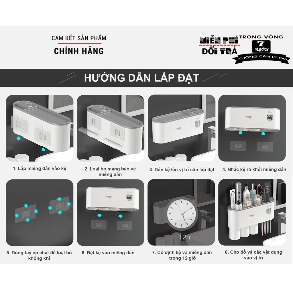 Nhà cửa & Đời sống > Đồ dùng phòng tắm > Kệ đựng bàn chải, kệ nhả kem đánh răng || Giá treo bàn chải nhà tắm OENEN có nhả kem đánh răng tự động kèm 3 cốc và miếng dán tườngCòn hàng