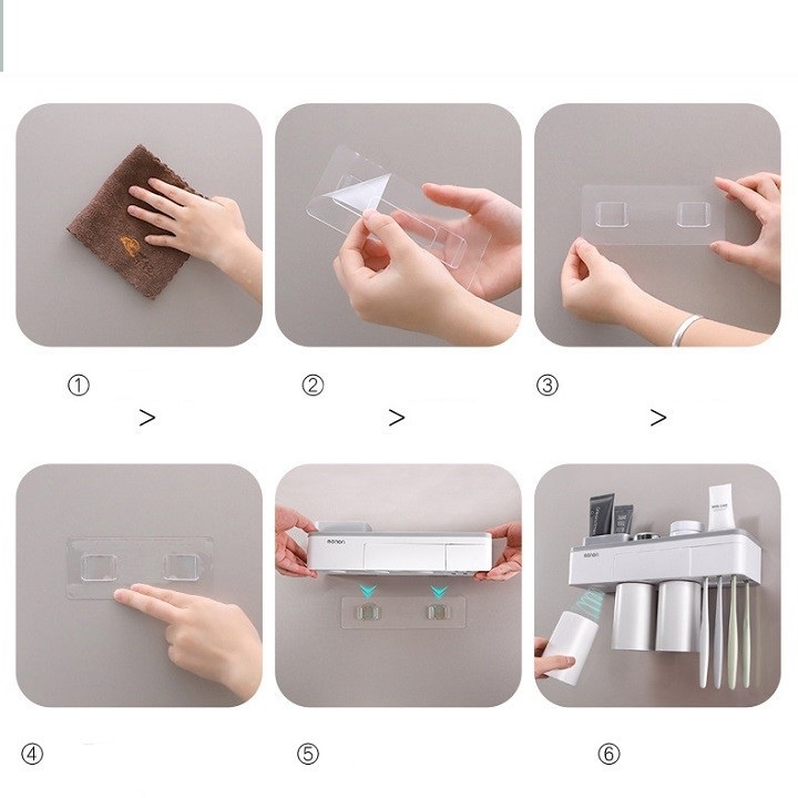 Nhà cửa & Đời sống > Đồ dùng phòng tắm > Kệ đựng bàn chải, kệ nhả kem đánh răng || Giá Treo Bàn Chải Nhà Tắm OENEN, Nhả Kem Đánh Răng Tự Động Kèm 4 Cốc Và Miếng Dán TườngCòn hàng
