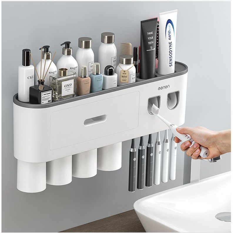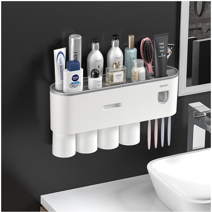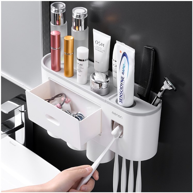 Giá Treo Bàn Chải Kem Đánh Răng Nhà Tắm OENON- Giá treo bàn trải đánh răng thiết kế thông minh tích hợp nhả kem đánh răng tự động