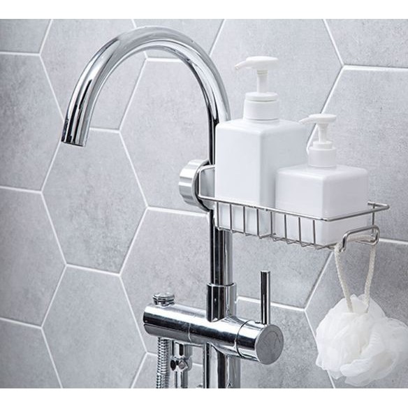 - Ai ngại khoan tường hoặc các giá nhựa, thủy tinh lâu lâu đóng cặn canxi nhìn chướng mắt lắm thì đổi qua cái inox này nha- gắn trực tiếp lên thanh inox vòi rửa khỏi đục đẽo luôn.