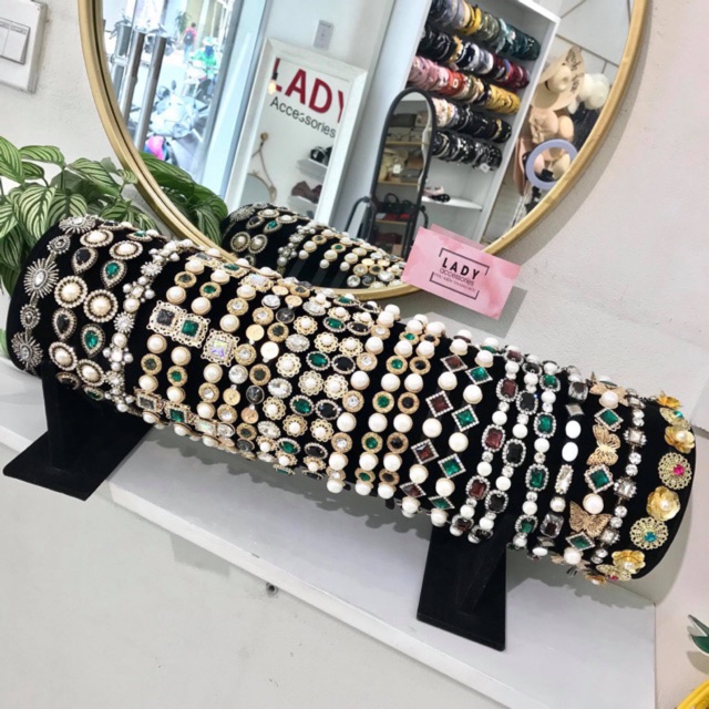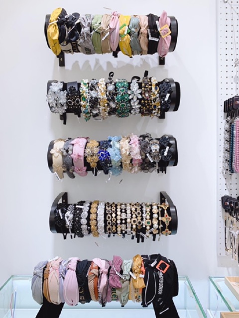 Giá treo cài tóc , chất liệu nhung đen và xám, giúp bạn sắp xếp cài tóc gọn gàng ngăn nắp . Dài 50cm nên treo được khá nhìu bạn nha . Dành cho các shop bán phụ kiện decor rất đẹp nè👉👉 Kệ có chân đứng rời , nếu bạn muốn treo tường có thể dùng silicon dán cố định lên tường nhé .