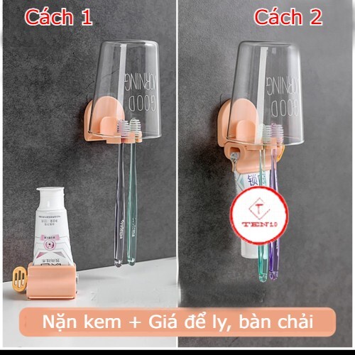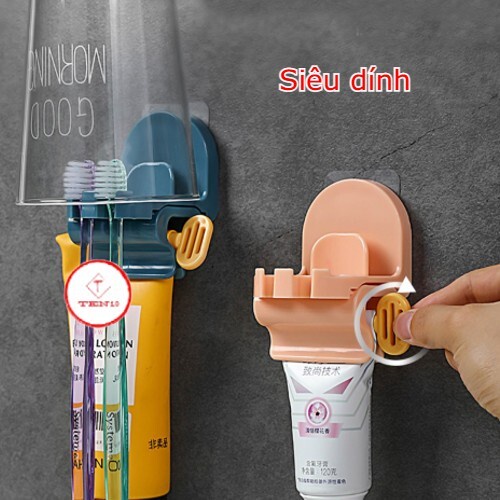 Nhà cửa & Đời sống > Đồ dùng phòng tắm > Kệ đựng bàn chải, kệ nhả kem đánh răng || Giá treo để bàn chải đánh răng kèm Nặn kem đánh răng xoay dán tường siêu dính tiện lợi, có thể lắp ghép màu xanh hồngCòn hàng