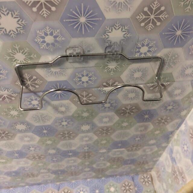 - Dán miếng dán giữ kệ, lấy tay miết mạnh để miếng dán dính chặt vào tường, lắp giá lên.