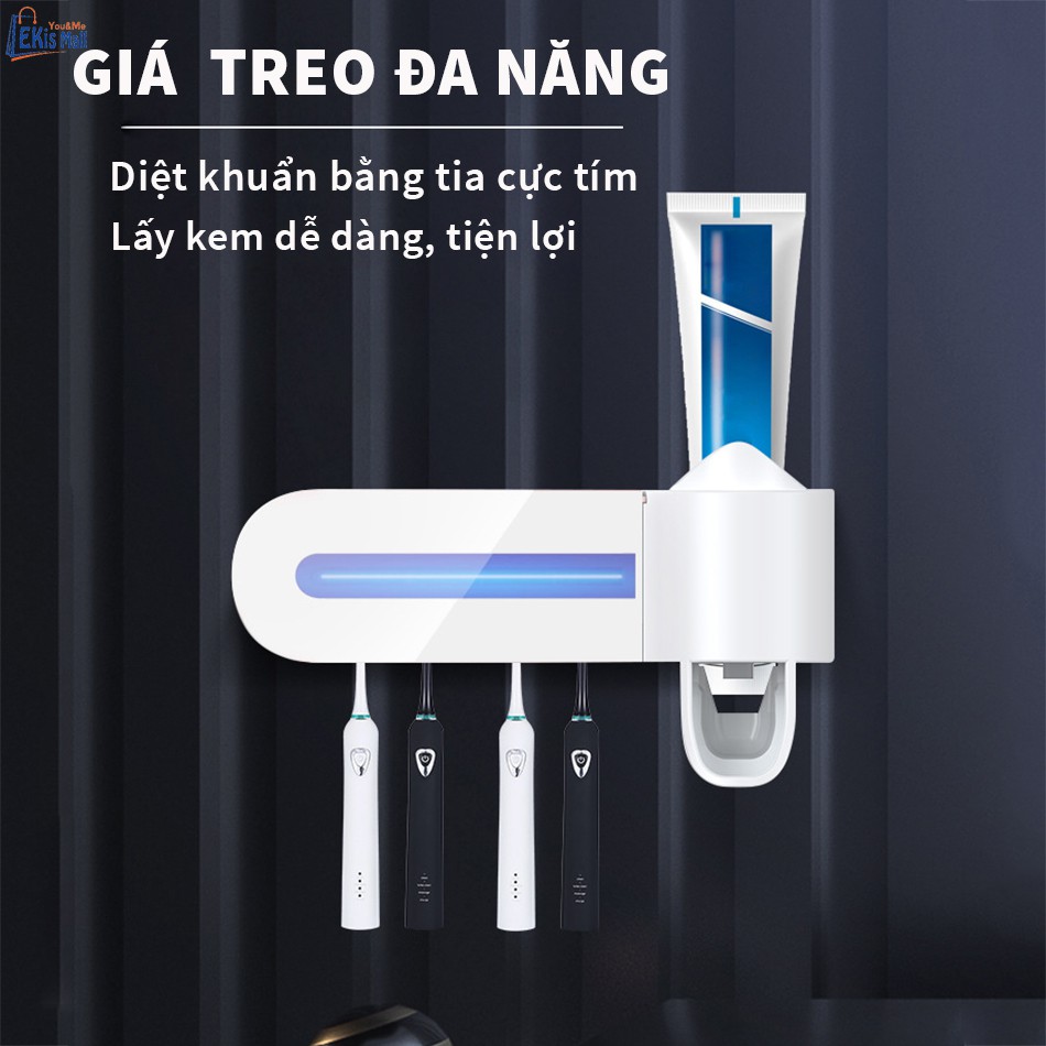 Giá treo diệt trùng bàn chải thông minh Cao cấp Kệ đựng bàn chải đánh răng nhả kem tự động
