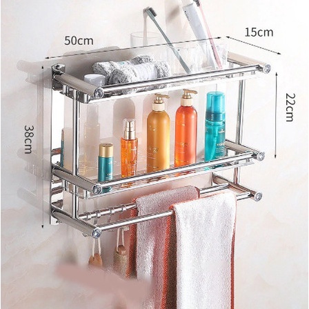 - Kệ treo khăn 2 tầng inox giúp cho không gian phòng tắm nhà bạn thêm sang trọng.
