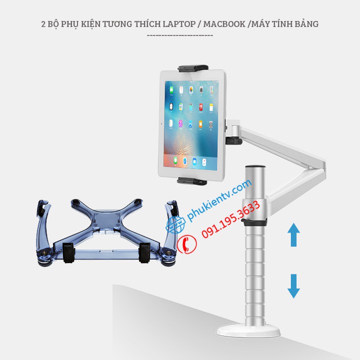 Giá Treo Đỡ Laptop - Macbook 10 - 15 Inch / Máy Tính Bảng - Ipad 9 - 10 Inch / Hợp Kim Nhôm Cao Cấp Model: OA 1S✪✪✪ Lưu ý: đây là sản phẩm đã bao gồm luôn cả tay treo gắn bàn. Bộ sản phẩm có cả 2 phụ kiện lắp được laptop và máy tính bảng.