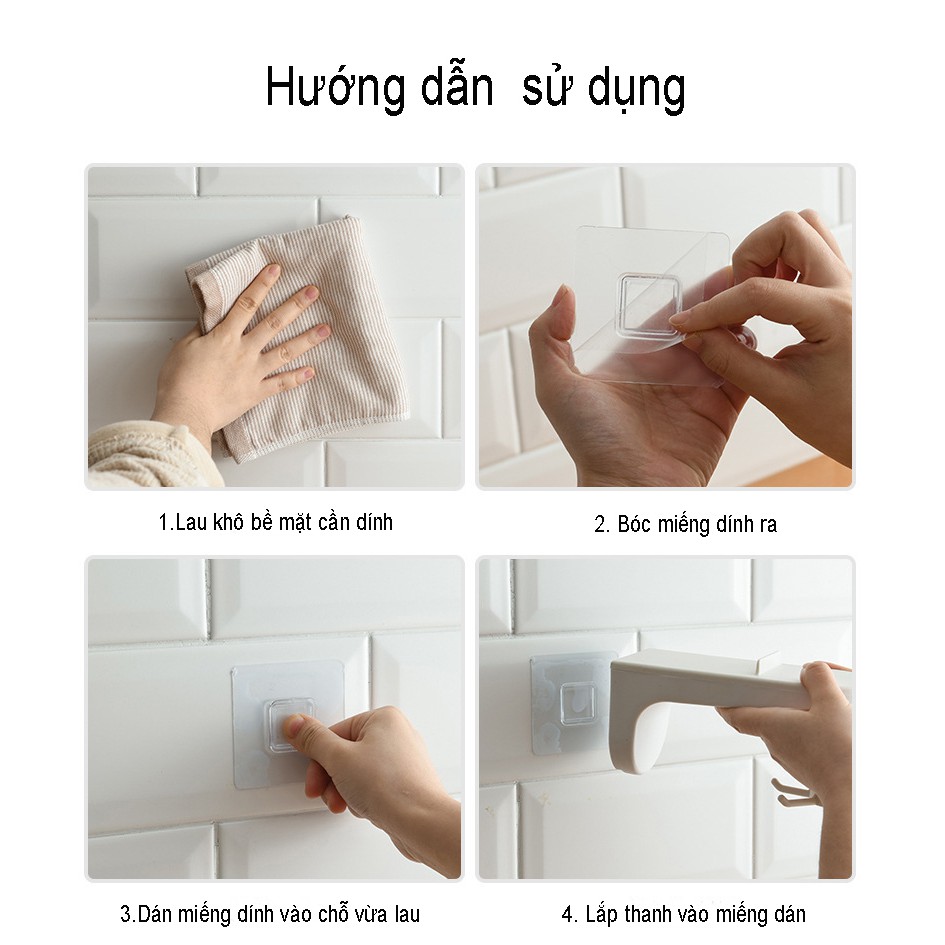 - Sản phẩm sử dụng keo dán để cố định nên quý khách vui lòng lựa chọn bề mặt phẳng và mịn như tường gạch men, đá, kính để đạt hiệu quả cố định tối đa
