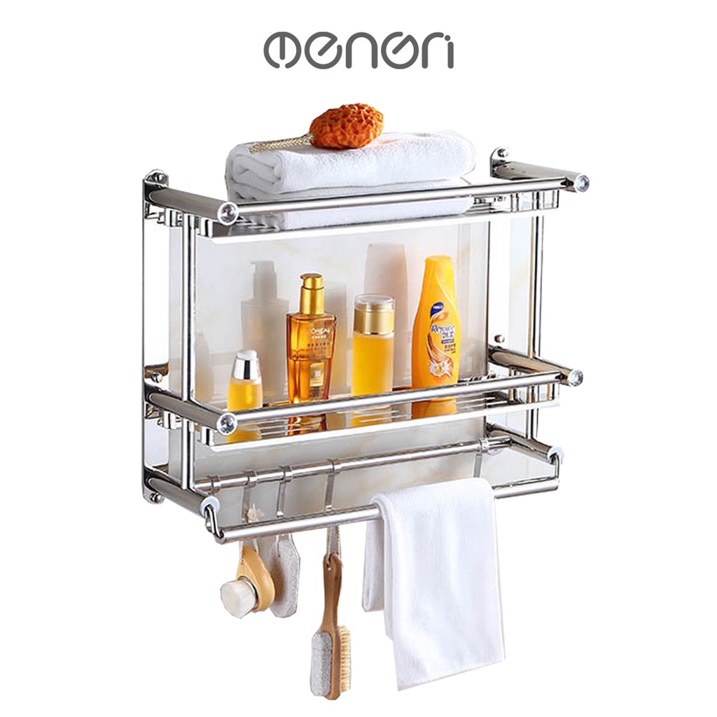 - Kệ treo khăn 2 tầng inox giúp cho không gian phòng tắm nhà bạn thêm sang trọng.