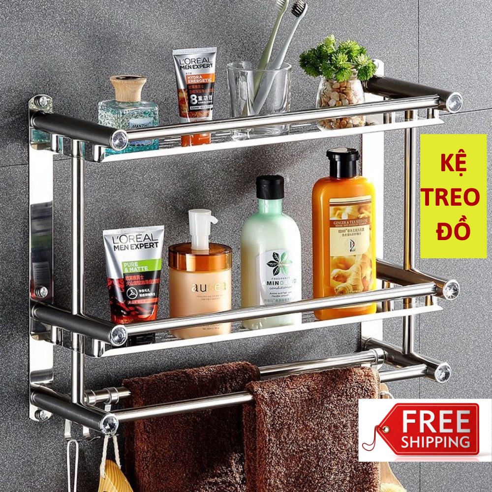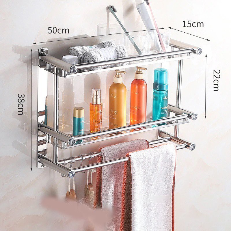 Giá Treo Đồ Nhà Tắm, Kệ Đựng Đồ Phòng Tắm Inox Không Gỉ Dán Tường Tiện Lợi