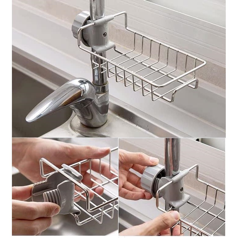 Giá để đồ thông minh kẹp vào vòi bồn rửa bát hoặc nhà tắm cực kì tiện lợi. Hoặc các chị thích kẹp vào đâu thì kẹp cứ bằng vòi tròn là OK hết.Sản phẩm có thể kẹp được vừa nhiều kích thước ống vòi rửa rất thuận tiện.