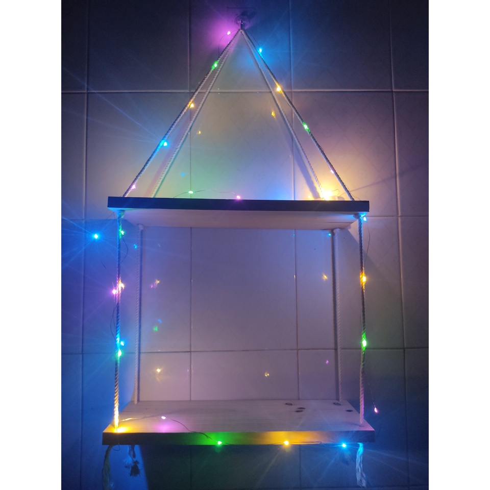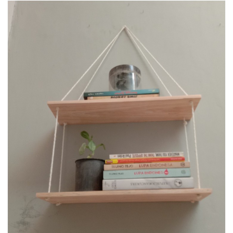 - DÂY TREO CHẮC CHẮN: Dây treo bằng dây thừng đường kính 5-6mm chịu tải 20kg nên bạn hoàn toàn yên tâm về độ chắc chắn của kệ.