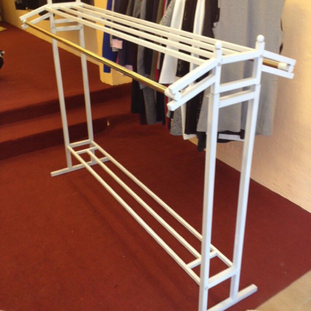 Giới thiệu Giá treo đôi, giá treo quần áo, chất liệu sơn tĩnh điện, thép hộp chắc chắn. Dài 1m2 hoặc 1m5, cao 1m4