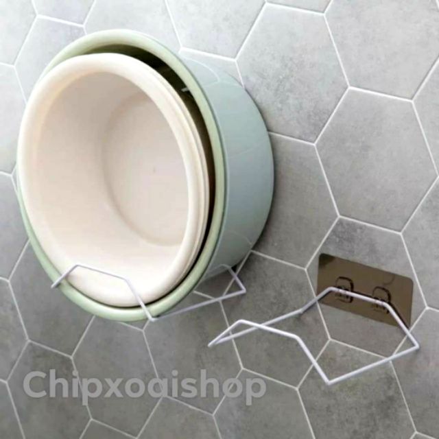 Giá treo , gác chậu nhà tắm chắc chắn có thể gấp lên khi không dùng– Chất liệu: Sắt sơn tĩnh điện kèm 1 miếng dán