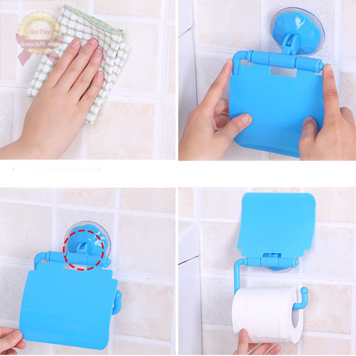 Giá treo giấy cuộn nhà vệ sinh dính tường giác hút có nắp che chống nước