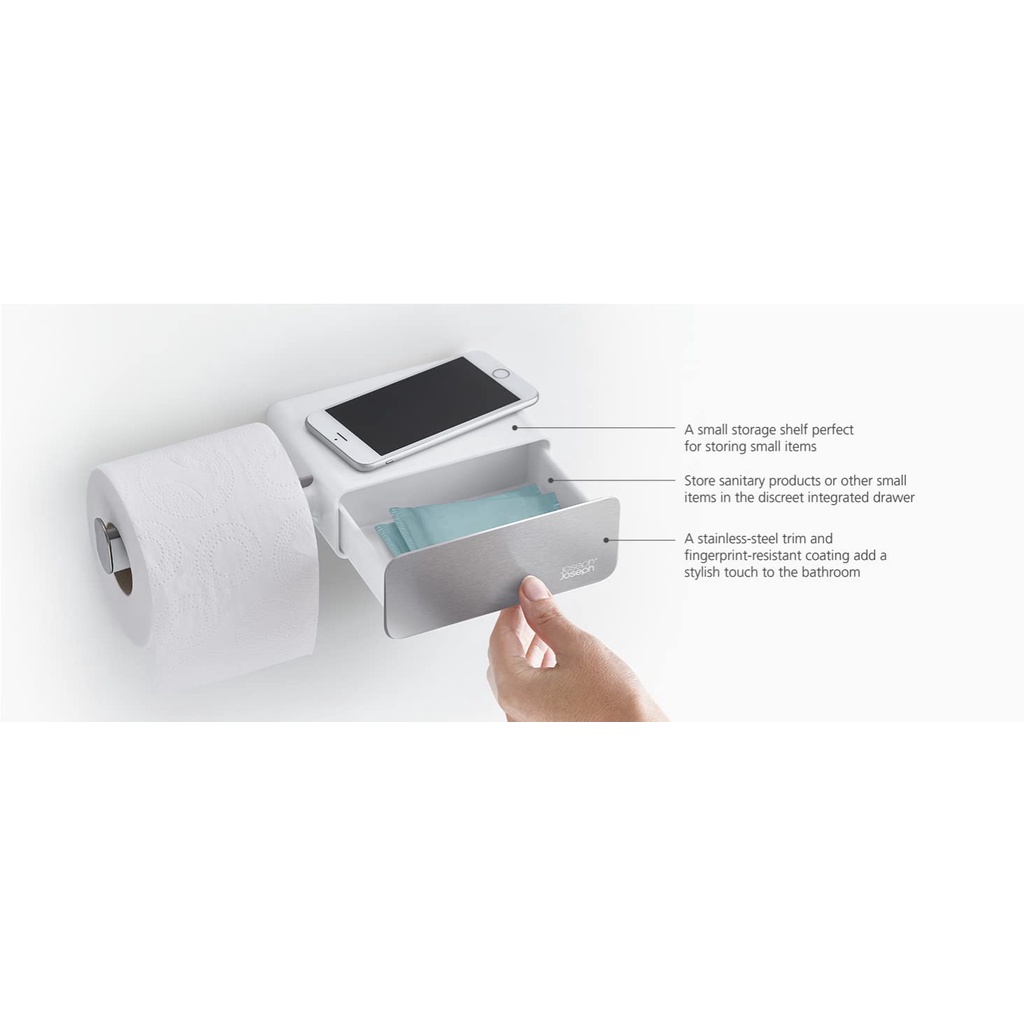 - Giá treo giấy vệ sinh đa năng Joseph Joseph không chỉ được thiết kế để giữ cuộn giấy vệ sinh, giá đựng cuộn thông minh treo tường này có một số tính năng bổ sung khác giúp người sử dụng có thể trải nghiệm sự tiện lợi mà nó đem lại một cách hiệu quả nhất.