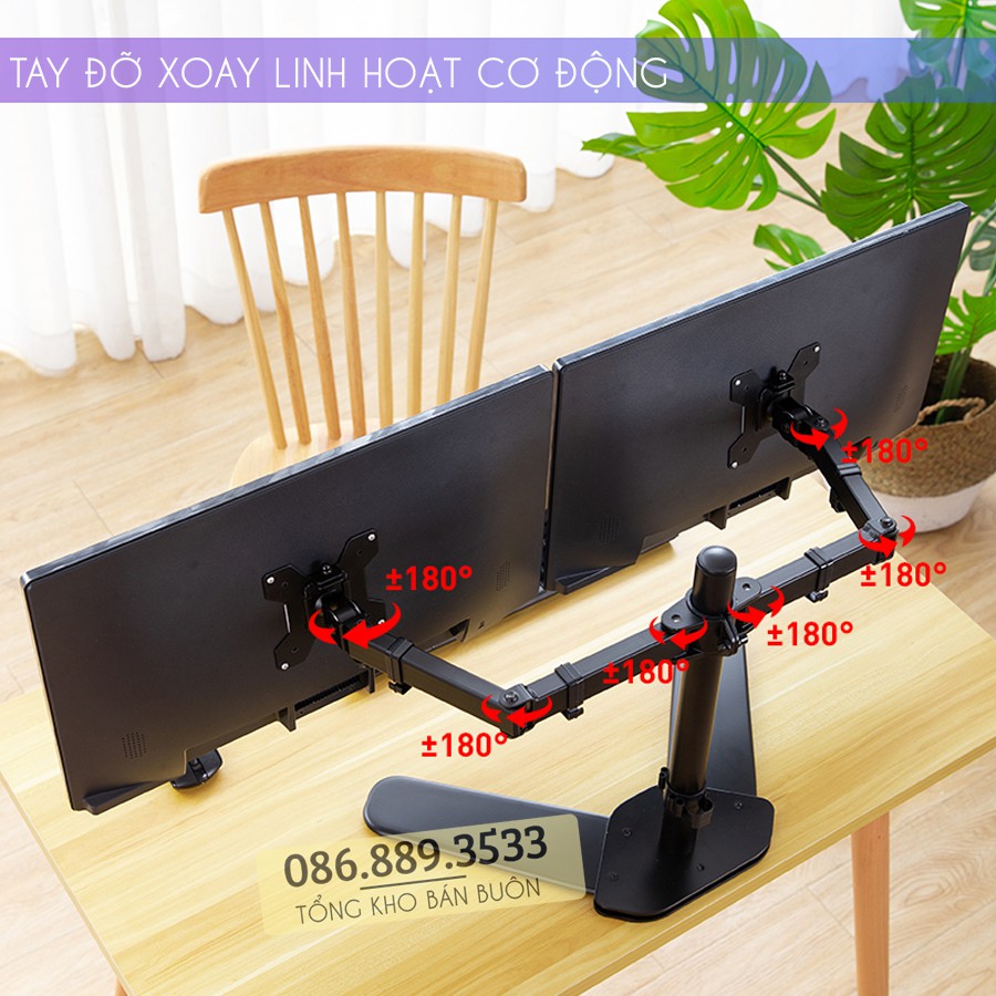 Máy tính & Laptop > Phụ Kiện Máy Tính > Bàn Laptop || Giá Treo Hai Màn Hình Máy Tính Đặt Bàn - Tay Đỡ 2 Màn Hình Để Bàn - Model: M042 - Hỗ Trợ Màn 17 - 27 Inch - Xoay 360 ĐộCòn hàng