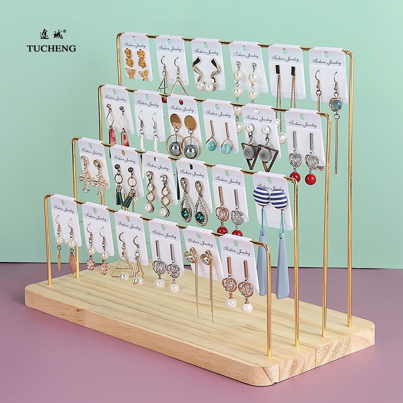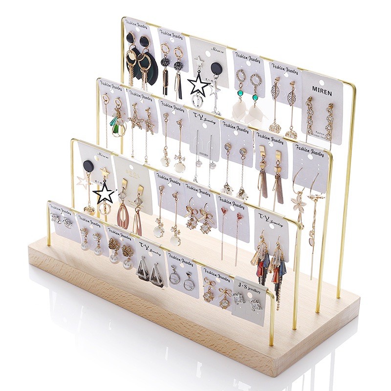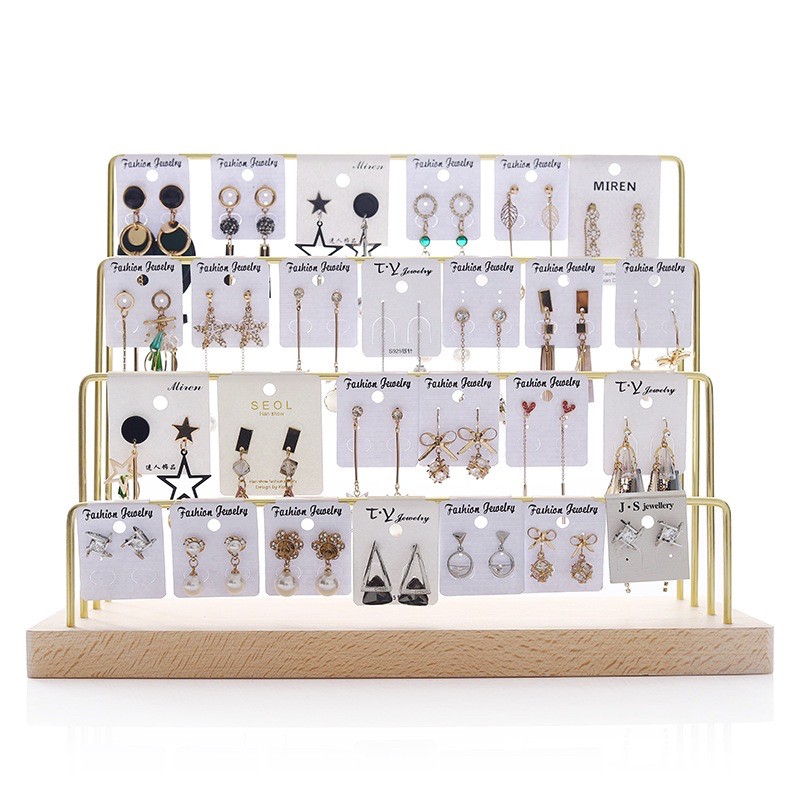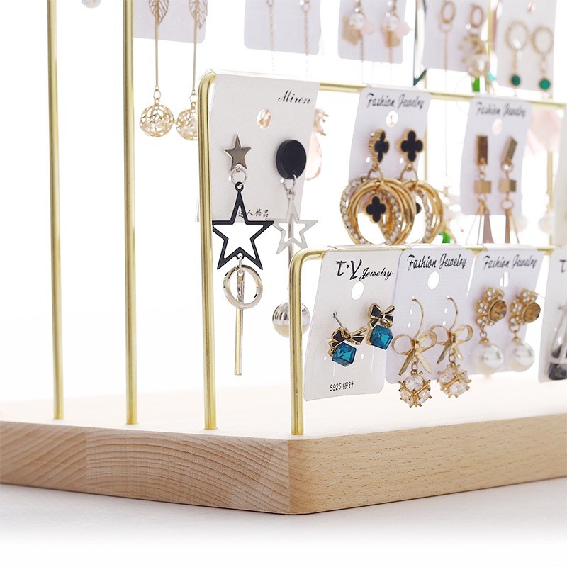 Giá treo hoa tai mẫu mới cho các shop trang sức- Đế gỗ , khung mạ màu vàng sang chảnh