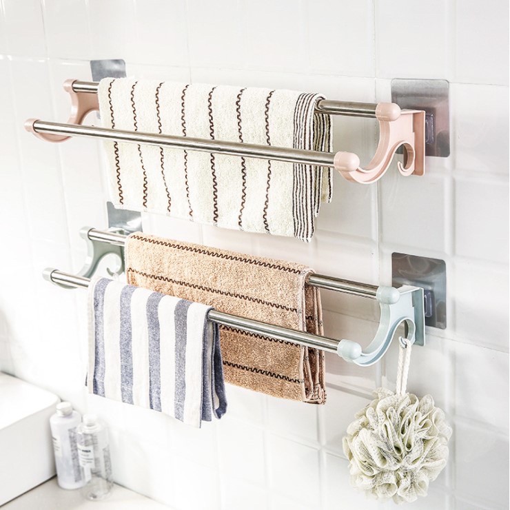 Gía treo khăn 2 tầng nhà tắm siêu tiện dụng tặng kèm miếng dán