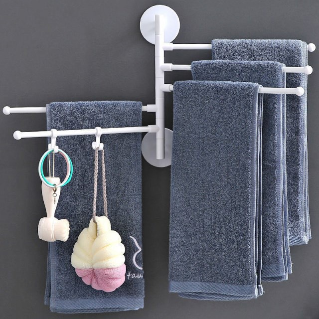 Giá Treo Khăn 5 Nhánh Xoay 180 Độ - Giá Treo Khăn Tắm Dán Tường 5 Nhánh Tặng Kèm 2 Móc Treo Tiện Dụng