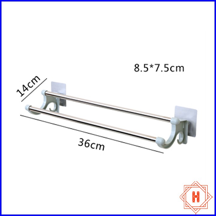 Giá Treo Khăn Inox 2 Tầng 55cm Nhà Tắm,Nhà Bếp Không Cần Khoan Vít { H }