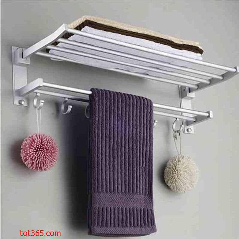 Giá treo khăn mặt 2 tầng– Thiết kế 2 tầng hiện đại, dùng làm giá treo quần áo, khăn mặt, khăn tắm,… đều rất tiện và đep.