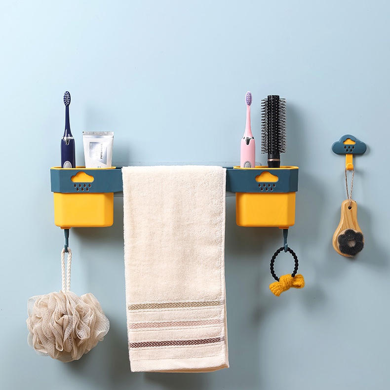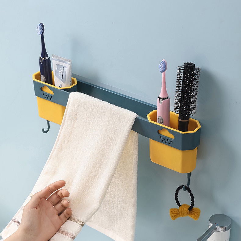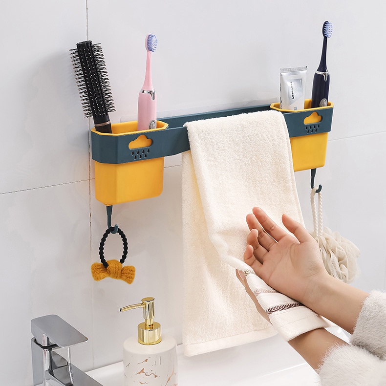 Giới thiệu Giá Treo Khăn Mặt - Bàn Chải Kem Đánh Răng Dán Tường Chắc Chắn Có Móc Treo Đồ