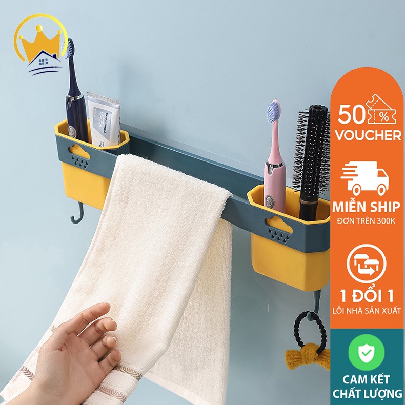 MÔ TẢ SẢN PHẨM- Kệ Treo Khăn Mặt, Đựng Bàn Chải Đánh Răng Có Móc Treo Đồ