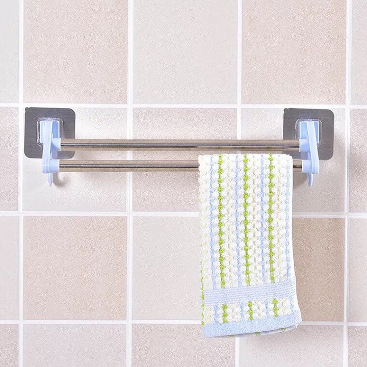 – Gồm 2 thanh ngang bằng chất liệu inox, vừa treo được nhiều thứ cùng lúc lại vừa bền đẹp chắc chắn