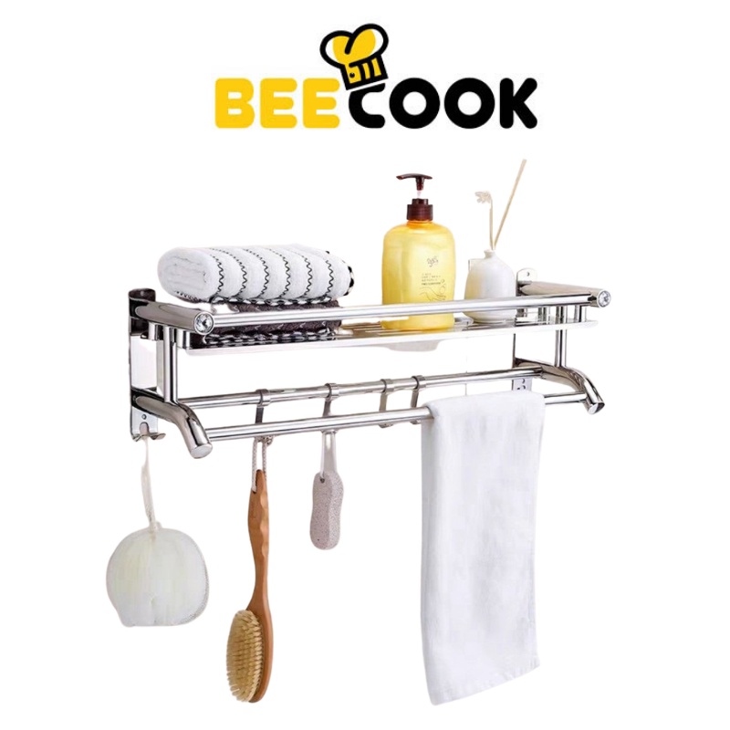 Giá Treo Khăn Nhà Tắm 2 Tầng BEECOOK Inox 304 Kệ Inox Treo Tường Dán Chắc Chắn