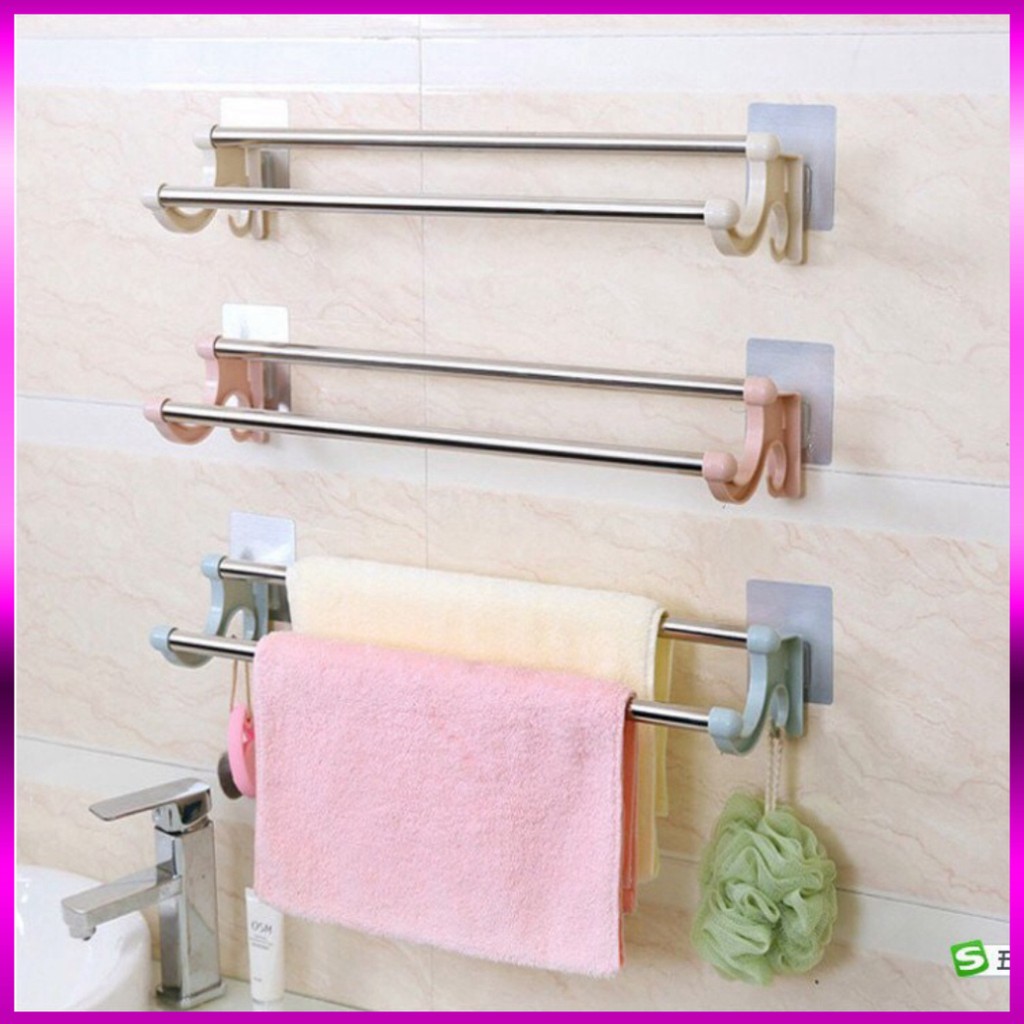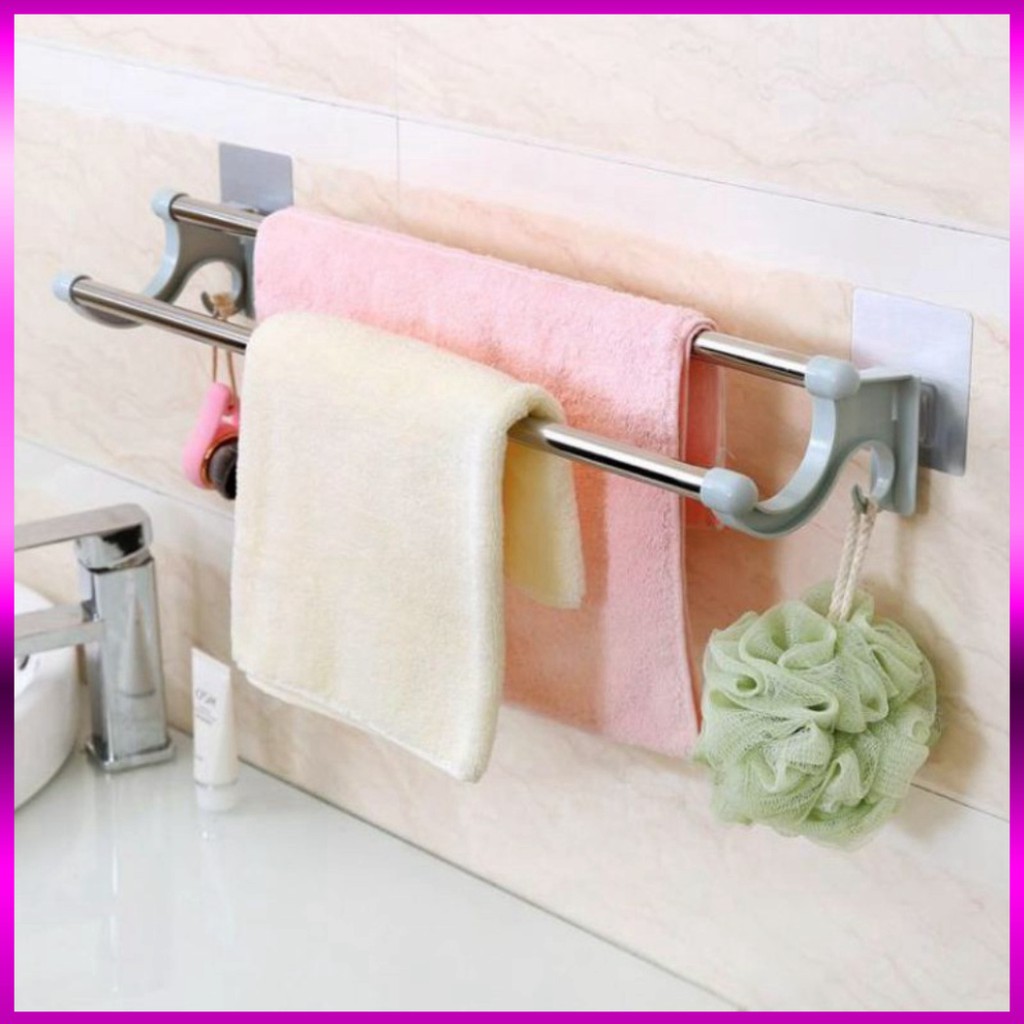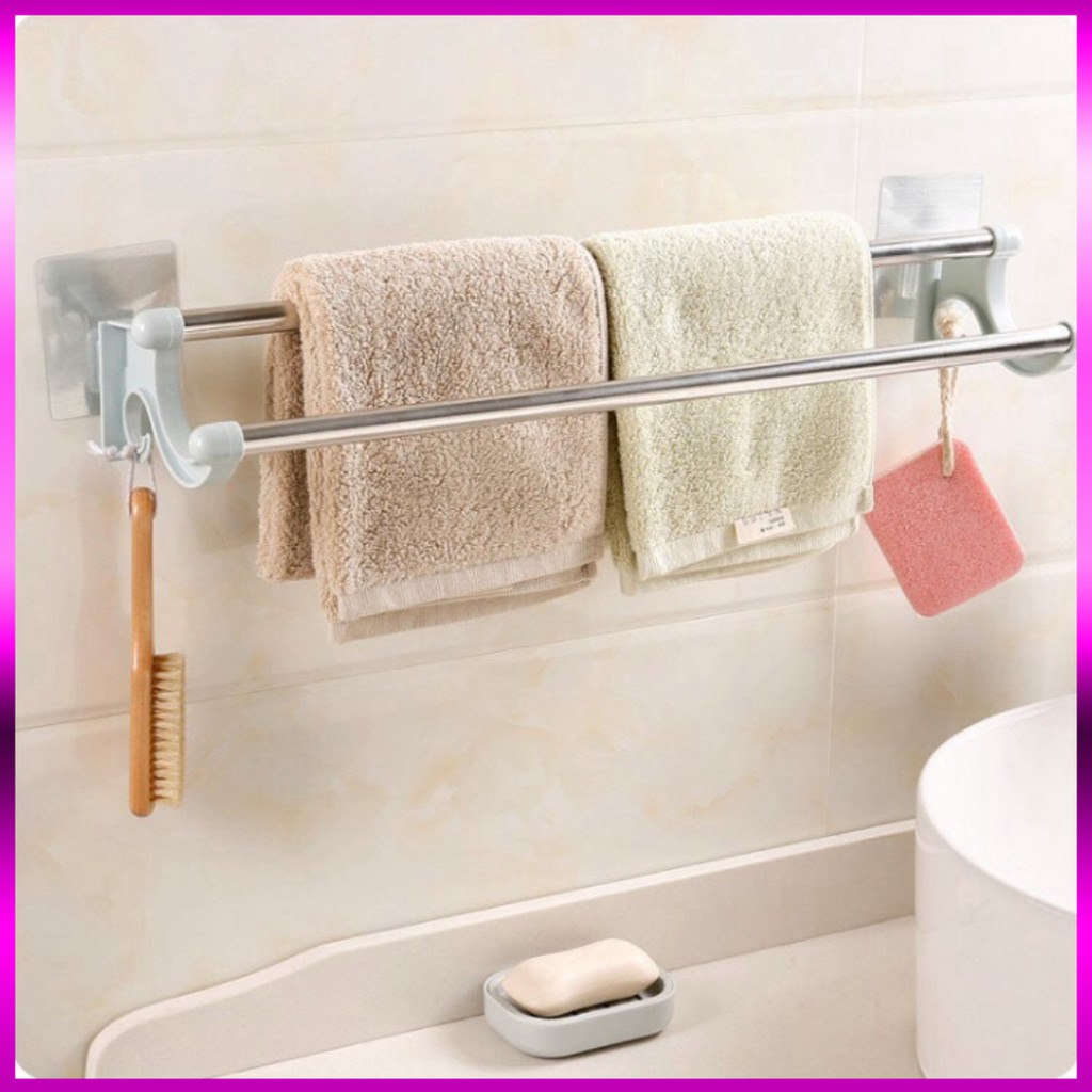 Giá treo khăn nhà tắm có thanh treo bằng inox dán tường siêu chắc chắn.Điểm nổi bật: