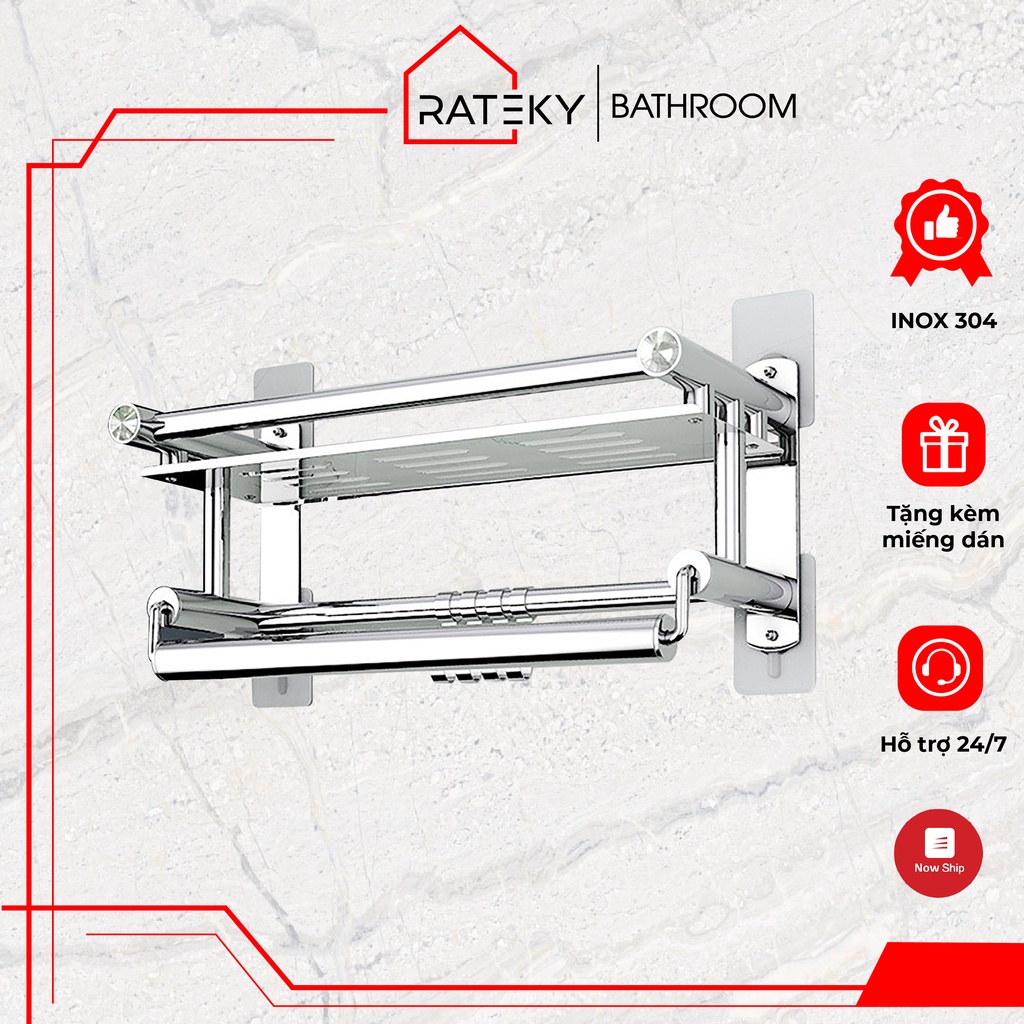 Giá treo khăn để đồ nhà tắm, Kệ Inox 304 dán tường không cần khoan đục