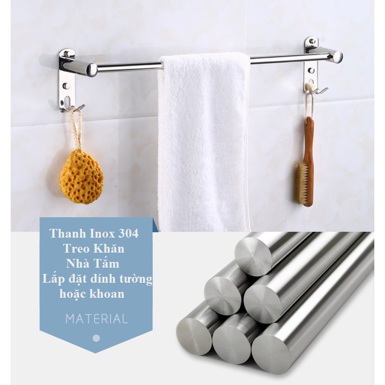- Thanh treo khăn Inox 304 sử dụng keo dính an toàn, trọng tải lên tới <3kg. Rất thích hợp cho ngôi nhà của bạn. Ngoài ra khi mua sản phẩm bạn sẽ được tặng kèm 4 miếng dán tường .