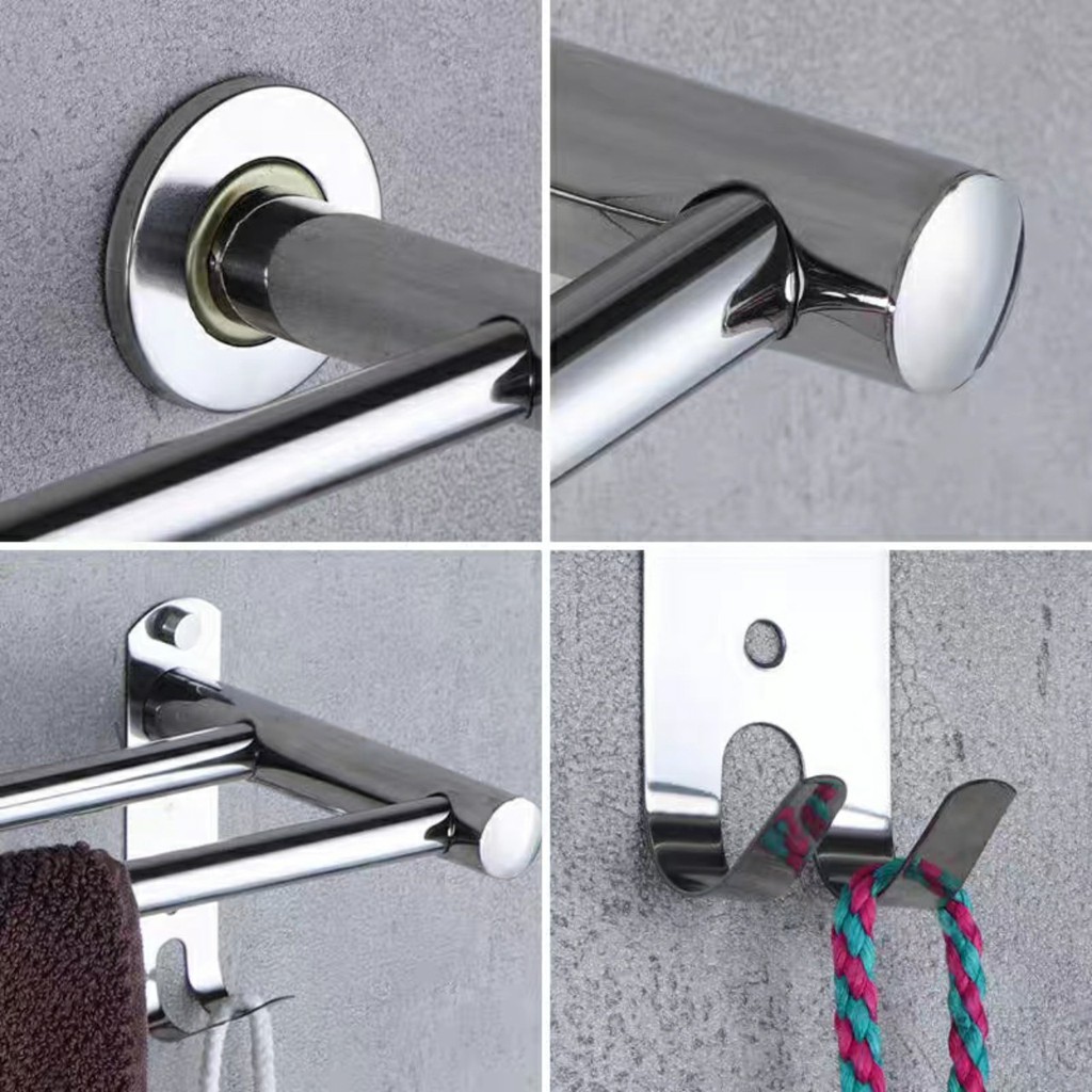 Giới thiệu Giá treo khăn nhà tắm Inox 304 tặng kèm 4 miếng đinh vít dán tường không cần khoan -TTIN78