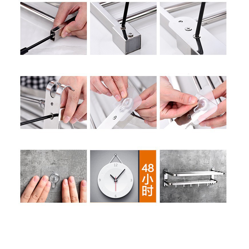 - Lắp đặt giá treo khăn: dùng miếng dính tường hoặc khoan bắn vít nở cực kì tiện lợi