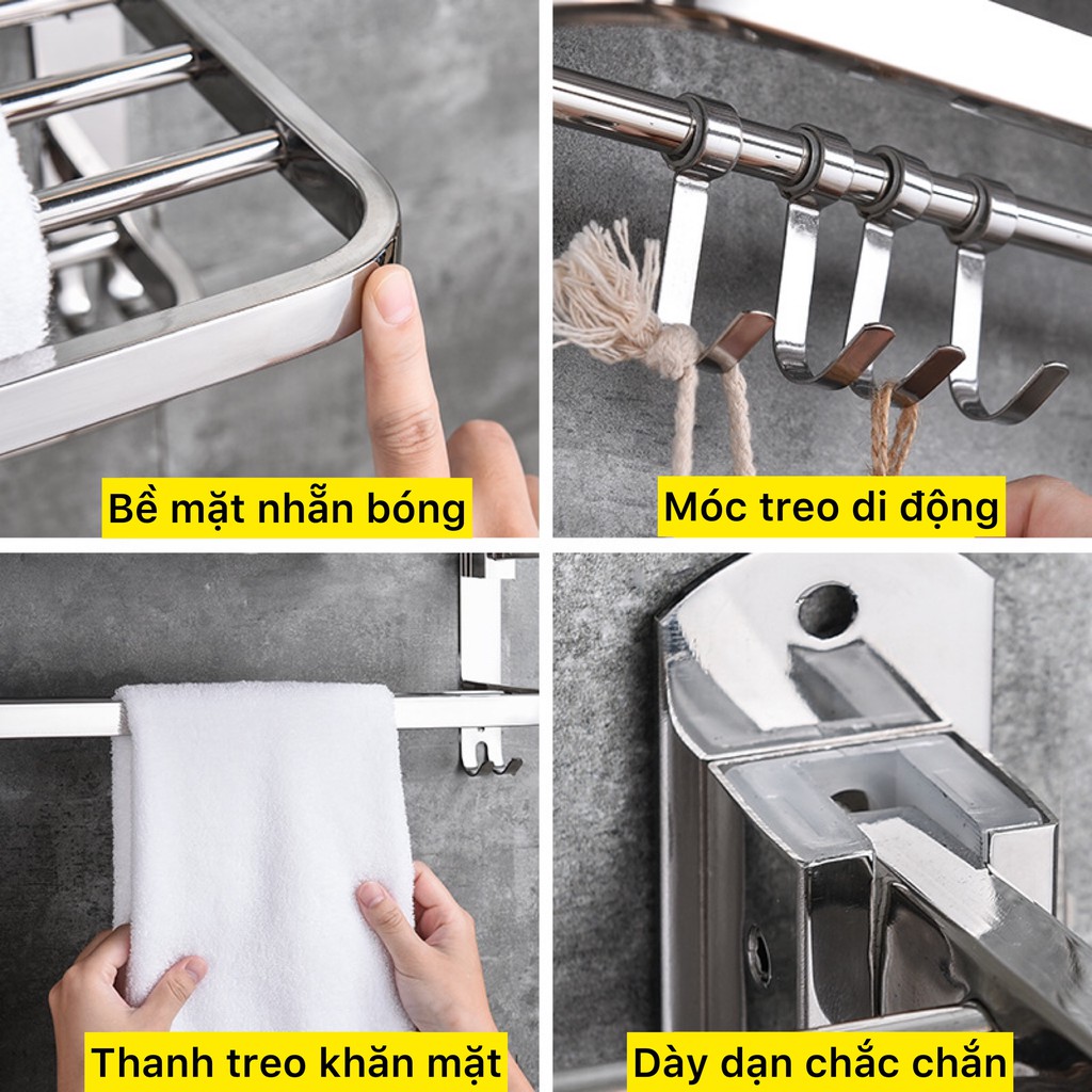 Giới thiệu Giá treo khăn nhà tắm inox 304 dán tường kèm kệ góc kệ chữ nhật để dầu gội sữa tắm