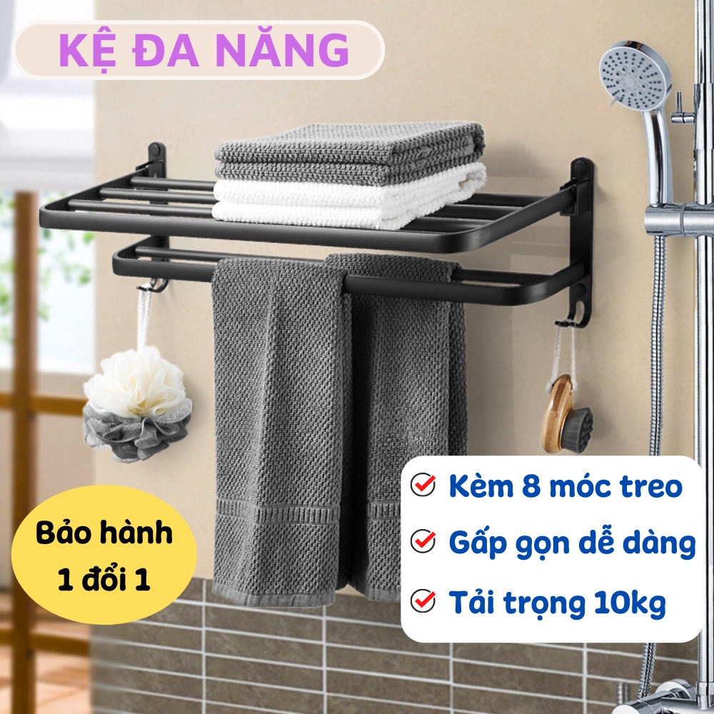 - Giá gồm nhiều thanh ngang được kết cấu hợp lý & cực kỳ chắc chắn, bạn có thể để quần áo, phụ kiện tắm trên kệ & treo vắt khăn bên dưới thật gọn gàng & tiện lợi khi sử dụng.